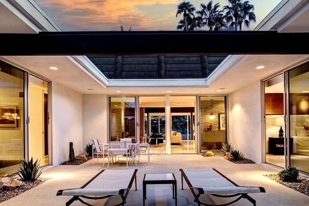 Another amenity to consider when searching for luxury homes for sale in Palm Springs is a lounge area. Building a lounge area is a great opportunity to make a space your own, as you can customize the area with specific color schemes, statues, wall art, and lighting fixtures. It doesn’t take much to create a patio area; simply make sure there’s ample space to sit and seating areas — whether they be a table and chairs or outdoor sofas — are positioned so everybody in a conversation can see and hear each other. A covered patio space, umbrellas, or trees for shade would complete an outdoor lounge area in Palm Springs.