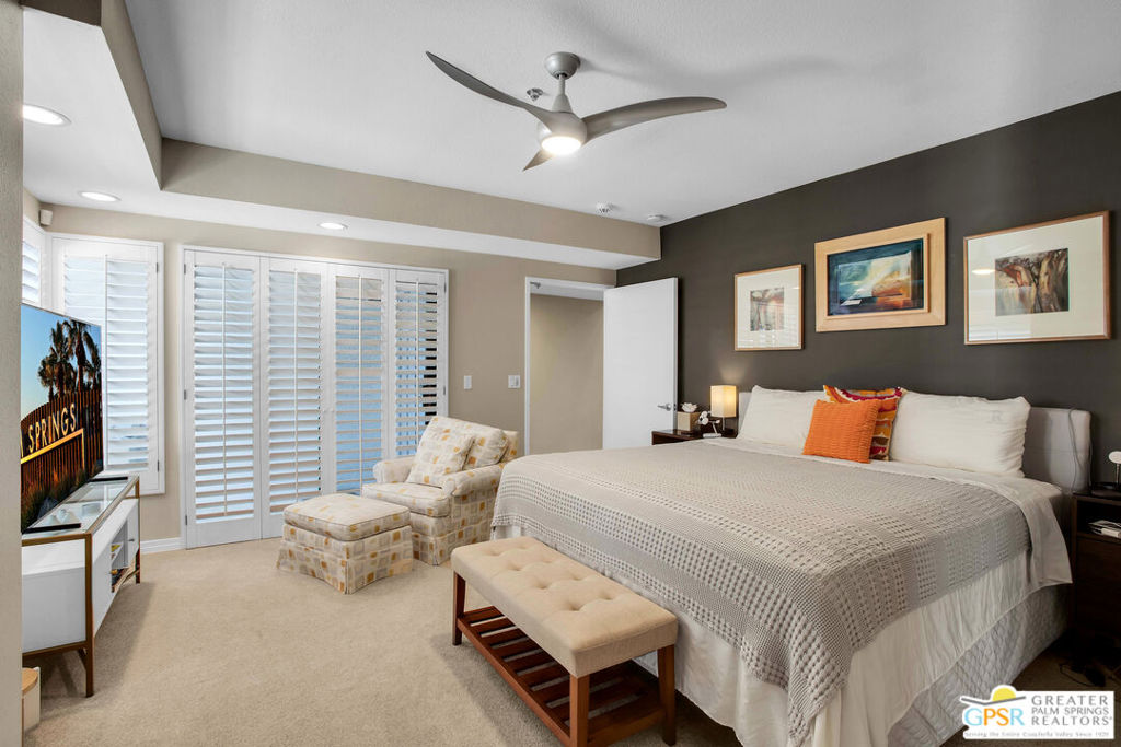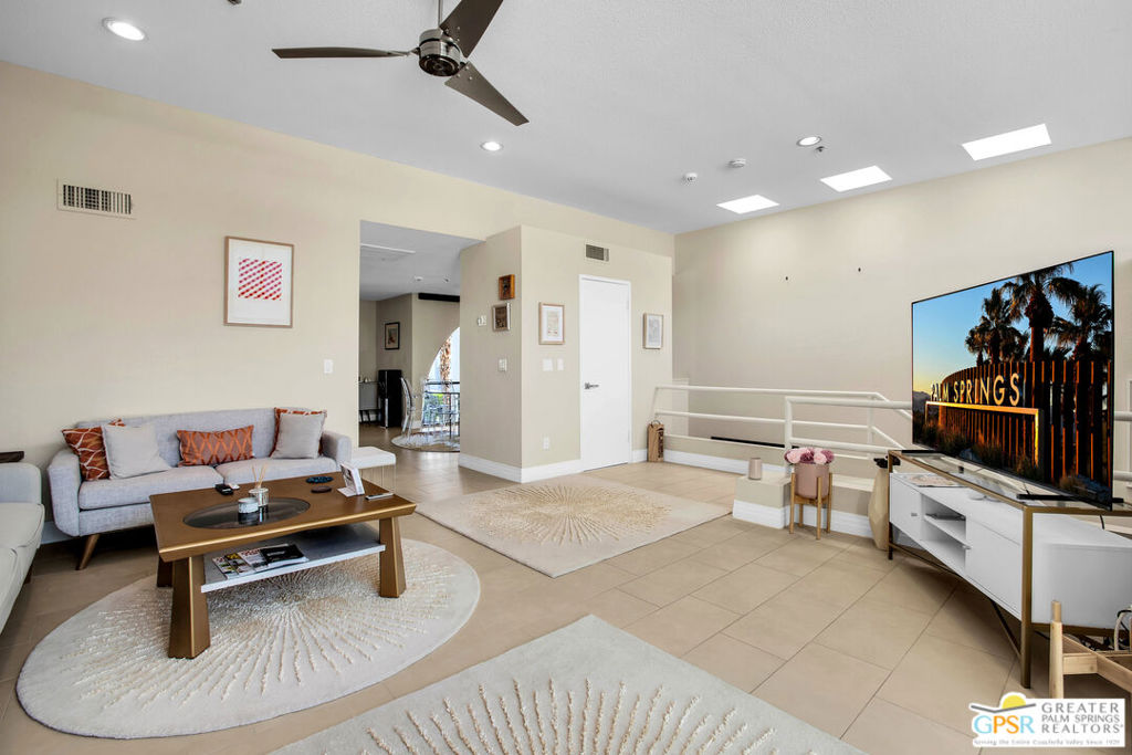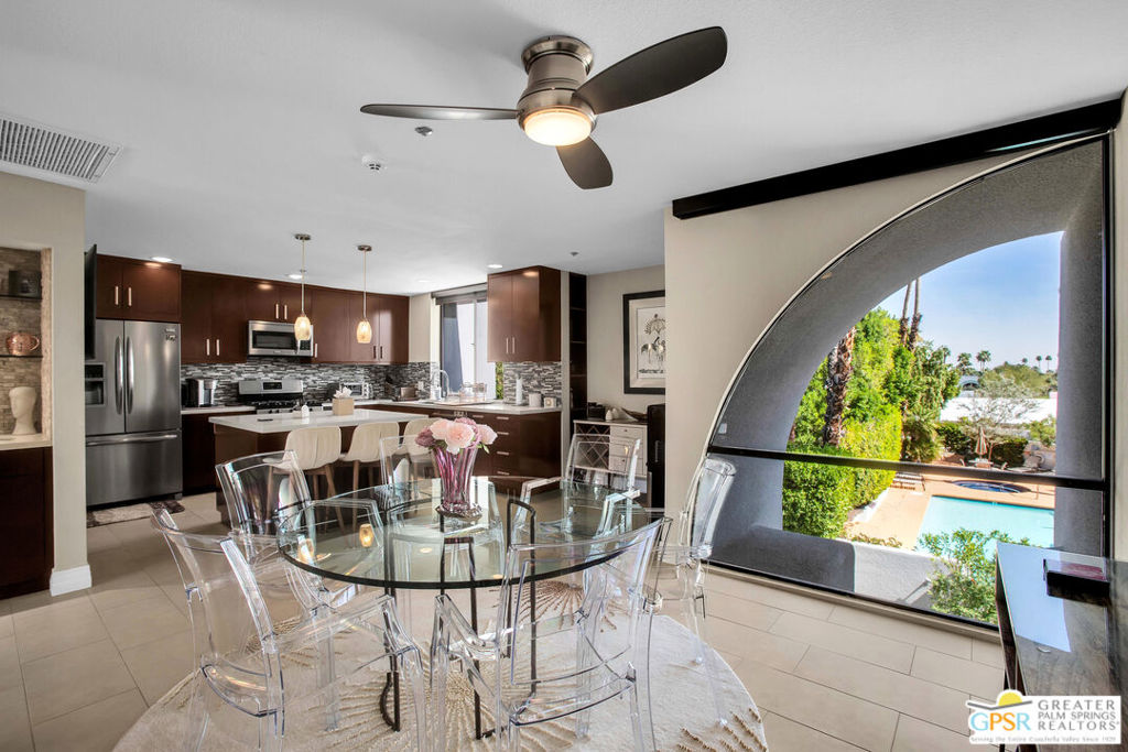 This is an uncommon, split level Condo in a coveted 12 unit Townhouse complex, called The Compound, adjacent to the Old Las Palmas neighborhood. Easy walk to Uptown Design area, restaurants and downtown. Completely remodeled.. ...and fashionably furnished per inventory - - Enter mid level foyer, ascend upstairs to living room with fireplace and an almost seamless access to an entertaining patio with spectacular mountain views. Efficient kitchen with white quartz Island with bar seating, walk in pantry and open dining area with views of community pool. Downstairs, there are two primary ensuite bedrooms with upgraded bathrooms. Convenient access to washer and dryer in the hall leading to an outside garden and retreat, Only 12 townhouse neighbors. Garage has new epoxy flooring and newly installed storage cabinets. Minimum maintenance and carefree living in abundant luxury! The condo is upgraded to meet discriminating buyers demand and high preferences for mountain views. . Contact Listing agent for more information and appointment before Open House marketing begins. Mostly furnished per inventory.