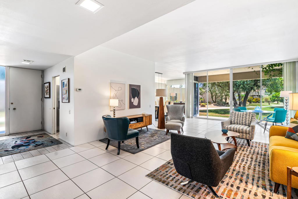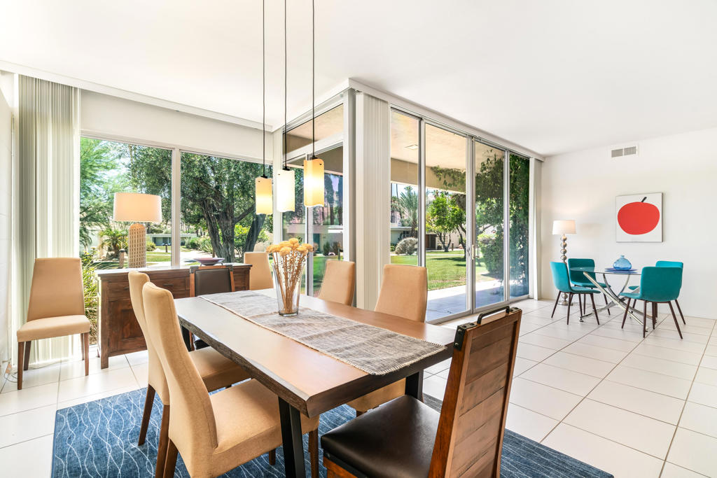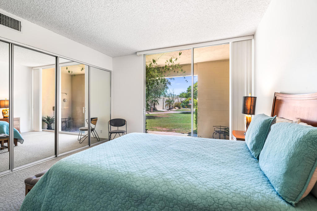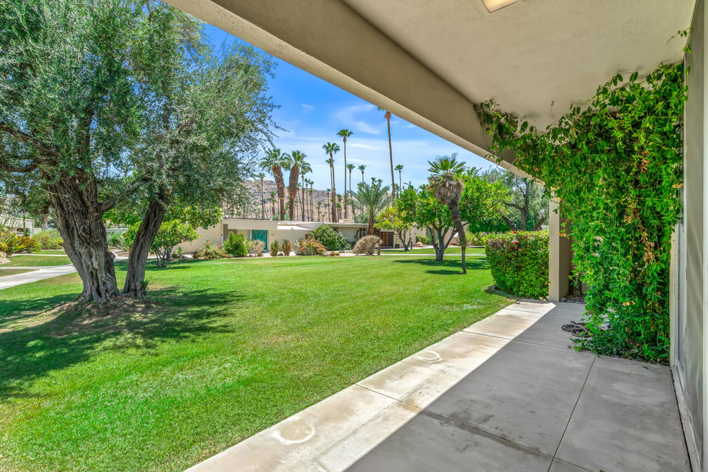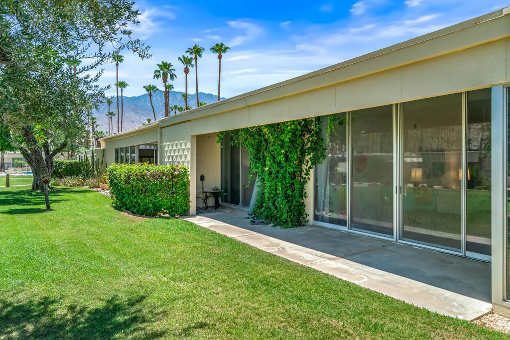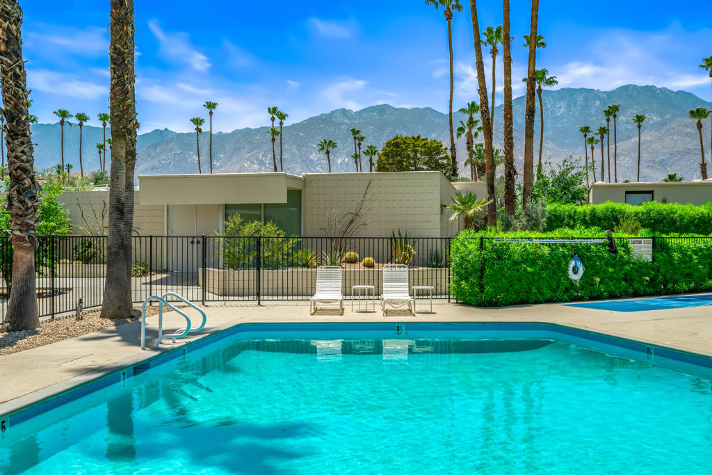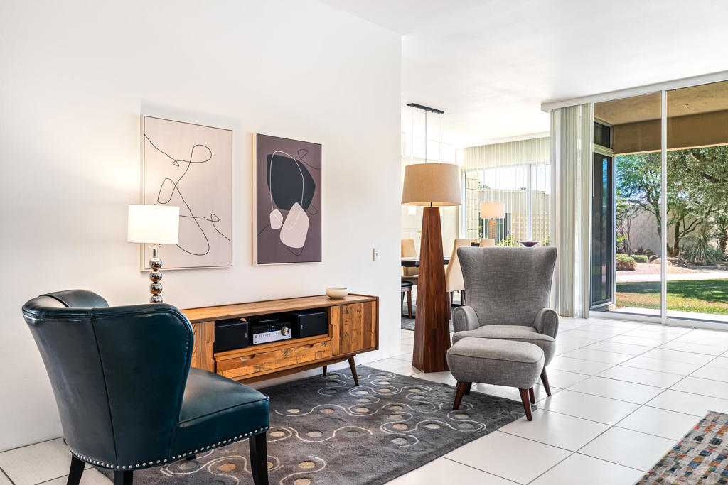 Enjoy the luxury of Seven Lakes Country Club living without the need to buy with this exceptional lease opportunity for thirty days or more. Designed by the renowned architect Richard Harrison, this wonderful 2-bedroom, 2-bath, plus den condo, seamlessly blends indoor and outdoor spaces. The epitome of midcentury architecture with 10 foot walls of glass and clerestory windows, the home is flooded with natural light offering breathtaking mountain vistas. The Great Room includes a fireplace, custom bar, and built-in bookshelves. For the culinary enthusiast, the modern kitchen is equipped with stainless steel appliances and custom cabinetry. The large living, dining, and bedroom areas all open to a large patio, perfect for enjoying the peaceful surroundings. The Primary Bedroom includes an en-suite bathroom with double sinks and a spacious walk-in shower. Additional features include an in-unit washer and dryer plus a versatile bonus space for home office, storage, or gym use. Located on a quiet cul-de-sac, the home ensures privacy and tranquility. As a resident of Seven Lakes, indulge in 15 heated pools and spas, a Ted Robinson-designed golf course with awe-inspiring mountain views, tennis and pickleball courts, and the iconic William Cody designed clubhouse with restaurant, library. and bar. A 24-hour guarded gate offers added security further complimenting Seven Lakes' luxurious lifestyle filled with recreational opportunities. This condo is available either furnished or unfurnished, ready to welcome you to a relaxed and upscale desert lifestyle.