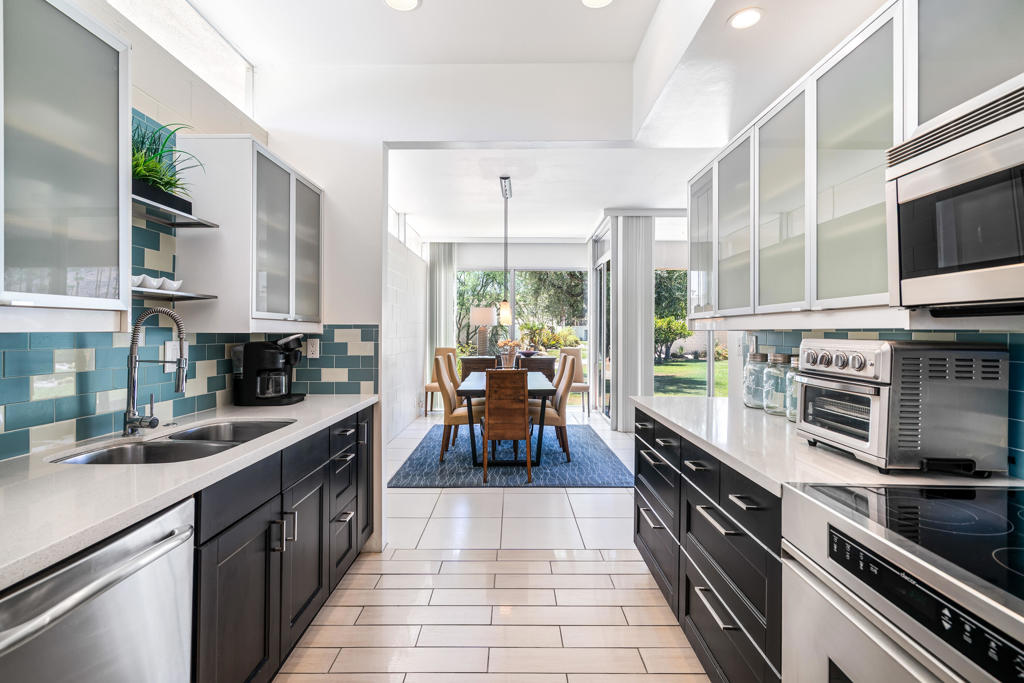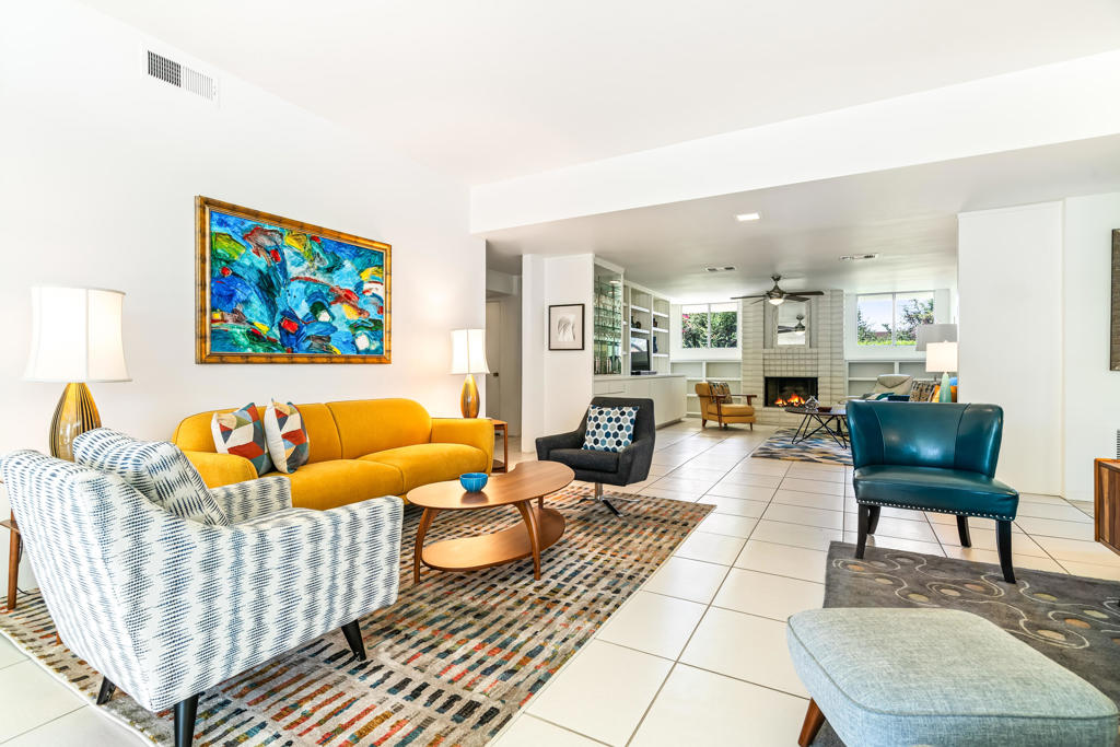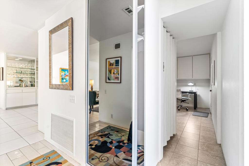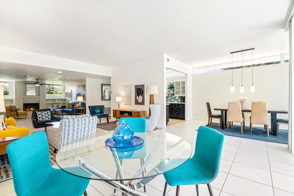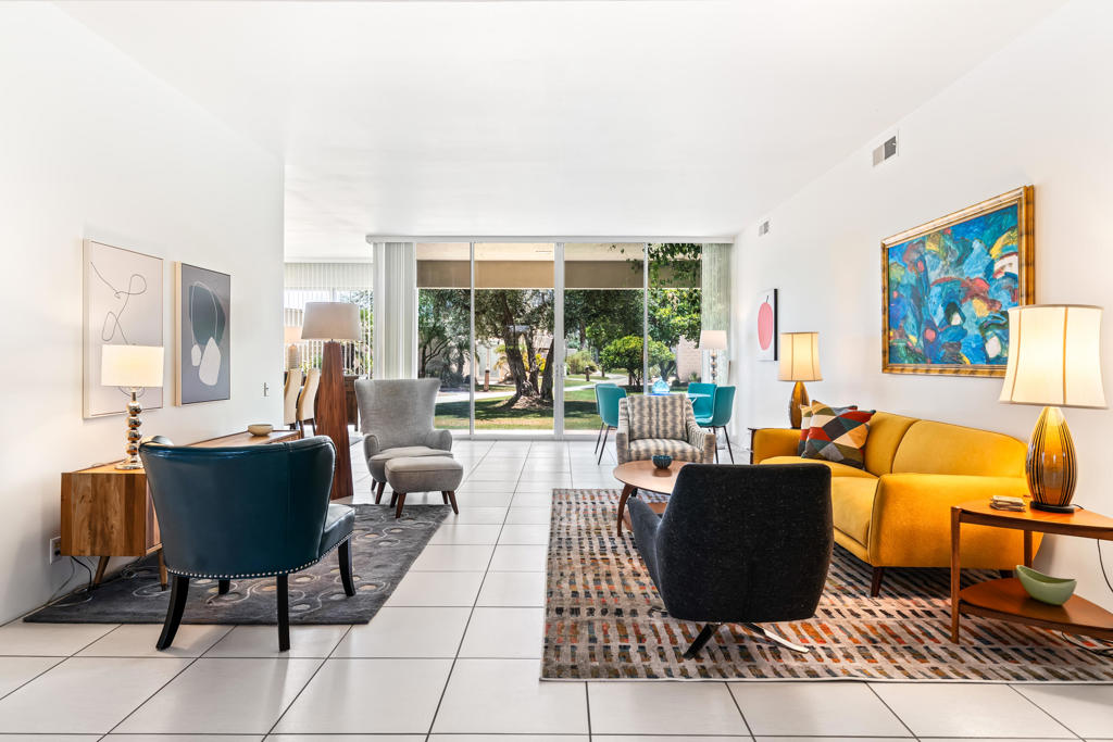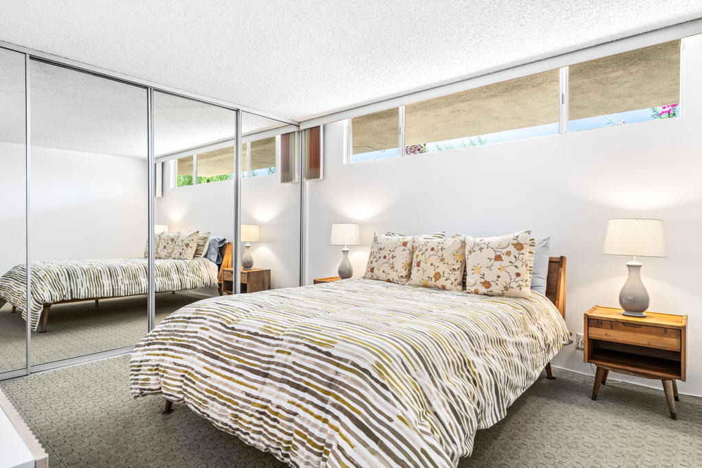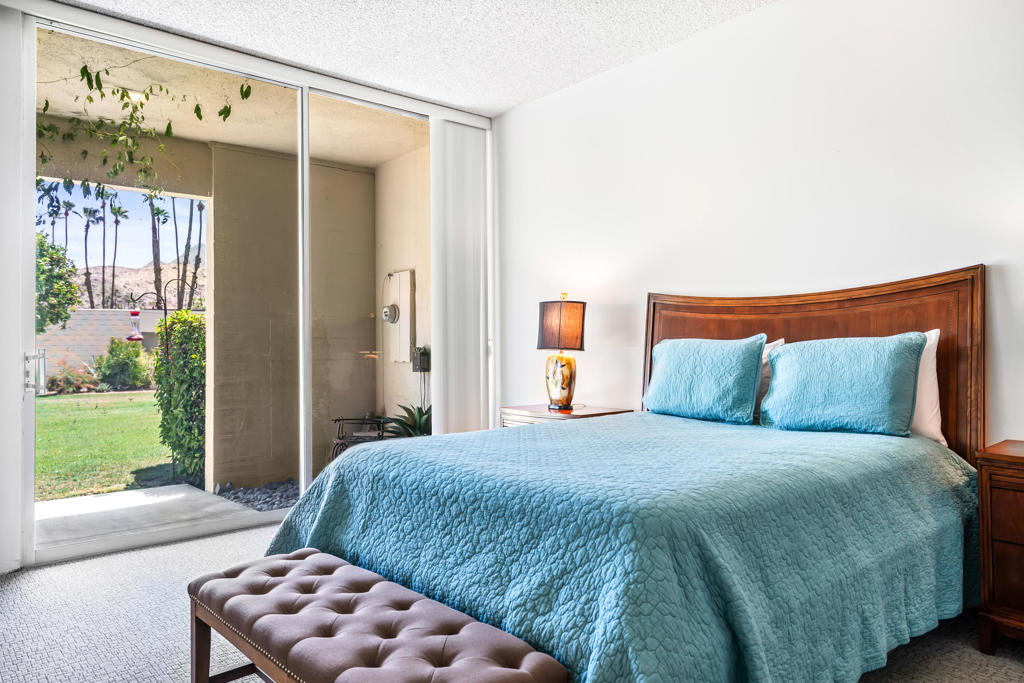 Enjoy the luxury of Seven Lakes Country Club living without the need to buy with this exceptional lease opportunity for thirty days or more. Designed by the renowned architect Richard Harrison, this wonderful 2-bedroom, 2-bath, plus den condo, seamlessly blends indoor and outdoor spaces. The epitome of midcentury architecture with 10 foot walls of glass and clerestory windows, the home is flooded with natural light offering breathtaking mountain vistas. The Great Room includes a fireplace, custom bar, and built-in bookshelves. For the culinary enthusiast, the modern kitchen is equipped with stainless steel appliances and custom cabinetry. The large living, dining, and bedroom areas all open to a large patio, perfect for enjoying the peaceful surroundings. The Primary Bedroom includes an en-suite bathroom with double sinks and a spacious walk-in shower. Additional features include an in-unit washer and dryer plus a versatile bonus space for home office, storage, or gym use. Located on a quiet cul-de-sac, the home ensures privacy and tranquility. As a resident of Seven Lakes, indulge in 15 heated pools and spas, a Ted Robinson-designed golf course with awe-inspiring mountain views, tennis and pickleball courts, and the iconic William Cody designed clubhouse with restaurant, library. and bar. A 24-hour guarded gate offers added security further complimenting Seven Lakes' luxurious lifestyle filled with recreational opportunities. This condo is available either furnished or unfurnished, ready to welcome you to a relaxed and upscale desert lifestyle.