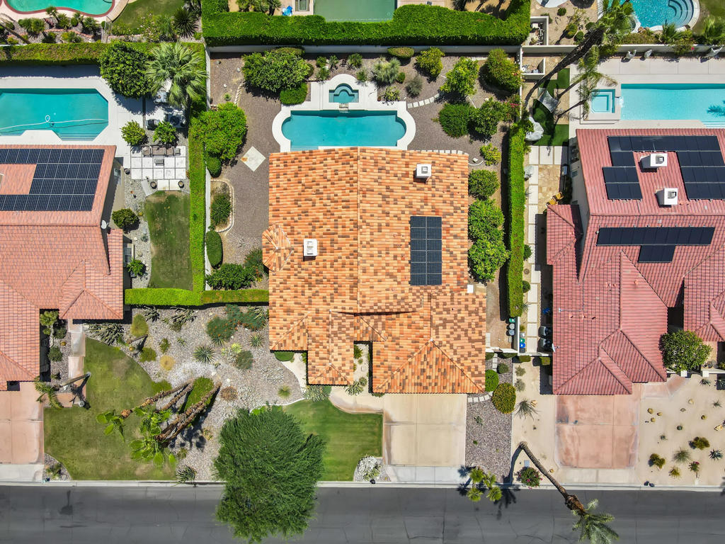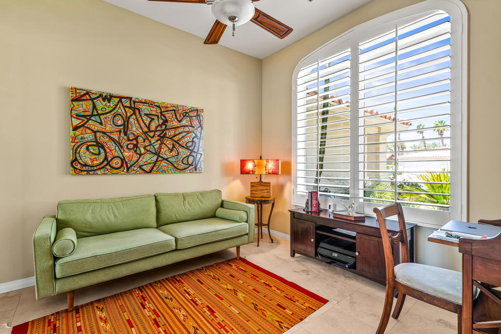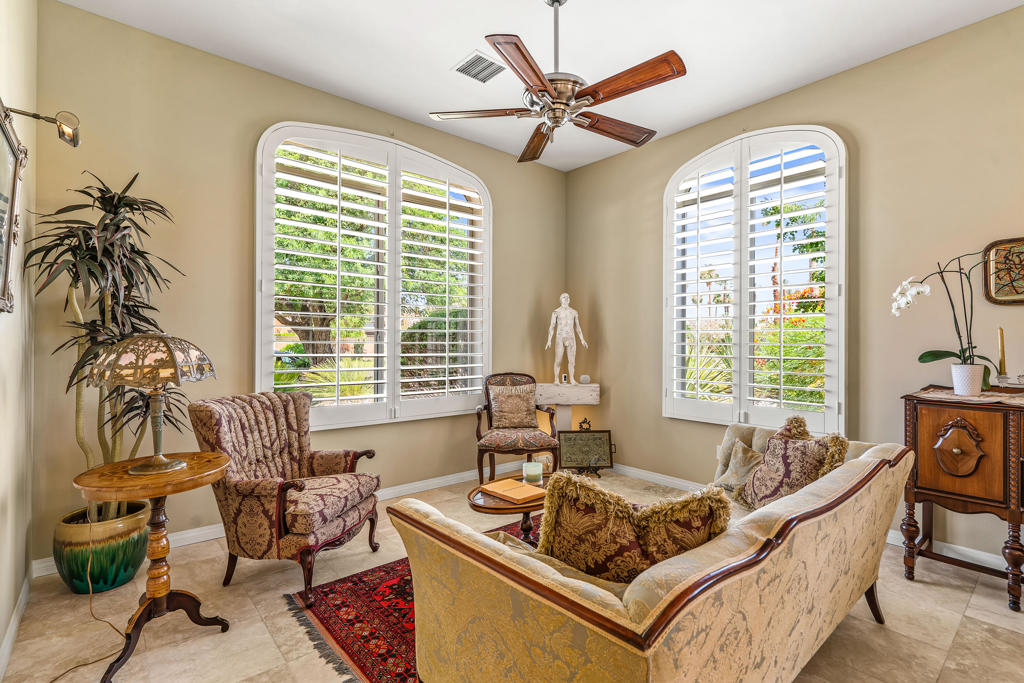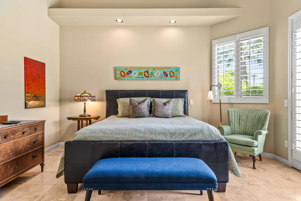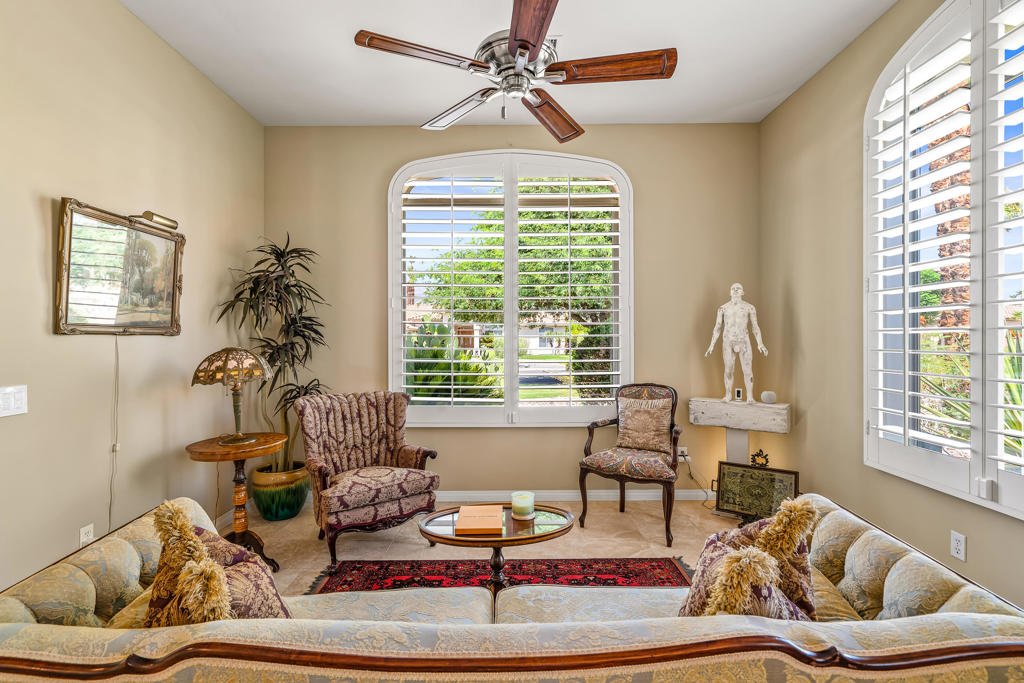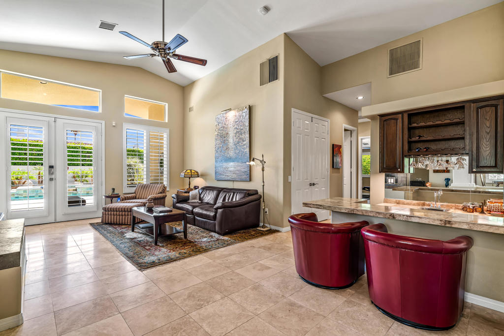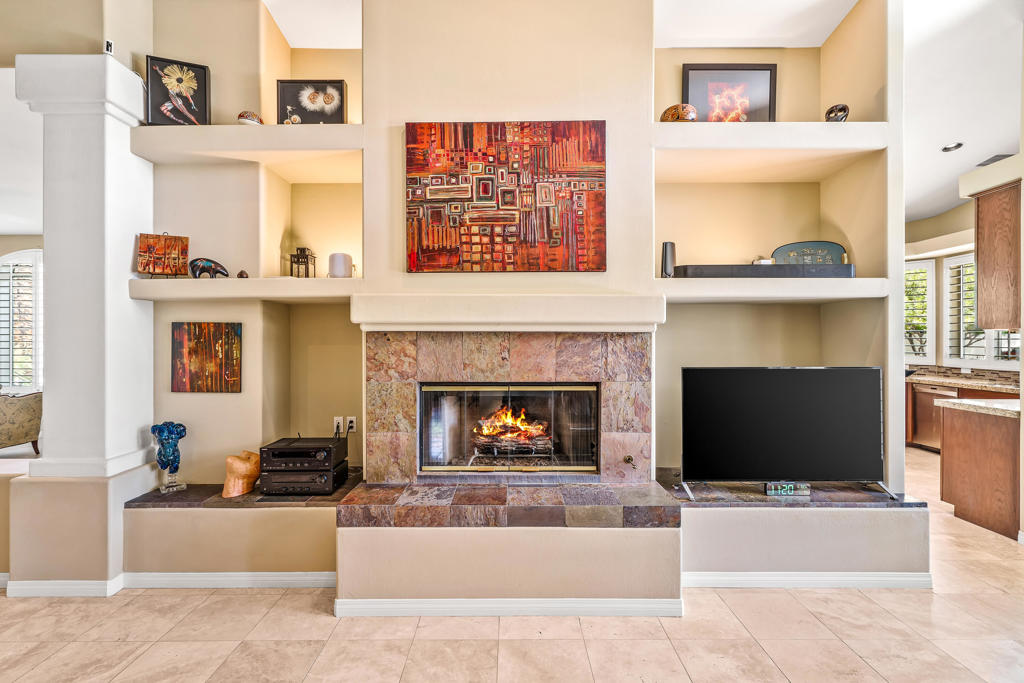 Discover unparalleled desert-style living in this exquisite Spanish traditional home in the prestigious Tamarisk area of Rancho Mirage. This residence combines timeless elegance and modern sophistication on a tranquil cul-de-sac with mountain views. Enter to find wonderful travertine flooring throughout, setting a grand yet welcoming tone. The home features a large primary retreat with fireplace as well as three additional bedrooms and two and a half baths all designed for owner and guest privacy. The chef's kitchen serves as the heart of the home, boasting granite countertops, ample cabinetry, and a cozy breakfast room with fireplace enhancing the space's charm. The formal large living and dining rooms, complete with vaulted ceilings, are ideal for stylish entertaining. The family room offers another inviting fireplace and step-down wet bar perfect for gatherings or relaxation. Outside, a private oasis awaits with covered patio and large backyard including a sparkling designer pebble pool with waterfall spa surrounded by mature landscaping. This outdoor sanctuary is ideal for lounging, al fresco dining or hosting friends and family. Owned solar panels ensure lower electric costs, while smart home technology allows remote control of lights and doors. The three-car garage offers ample storage and workspace, blending practicality with luxury. This isn't just a home ... it's a lifestyle. Every detail is crafted for an unparalleled living experience, where elegance, comfort, and technology merge into one stunning retreat all for an amazing price. Don't miss this opportunity.