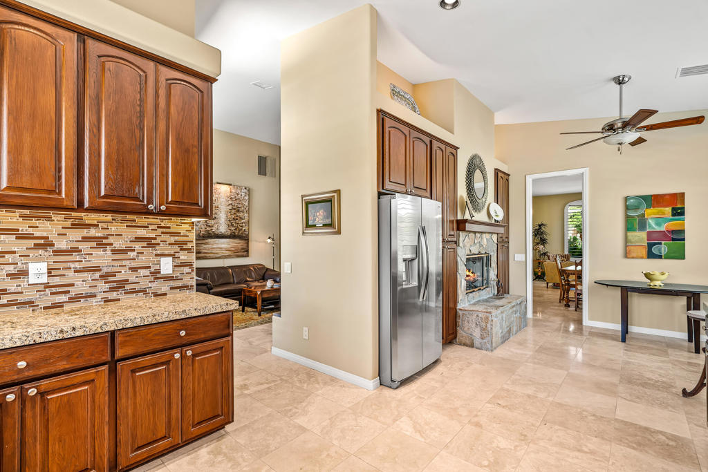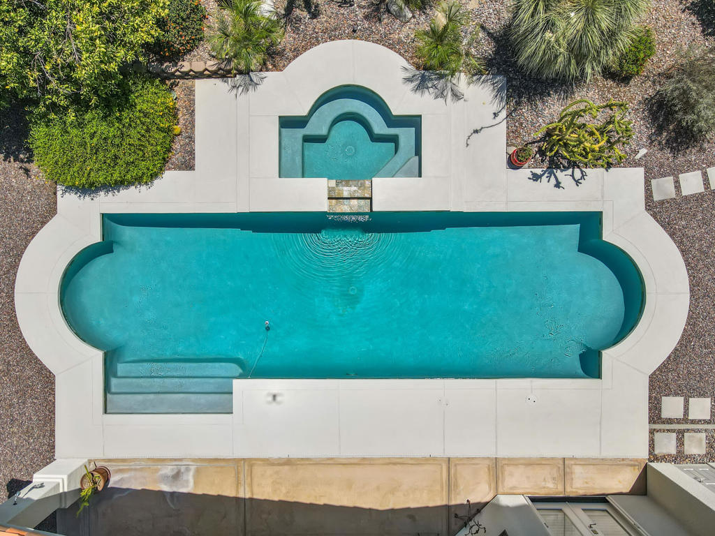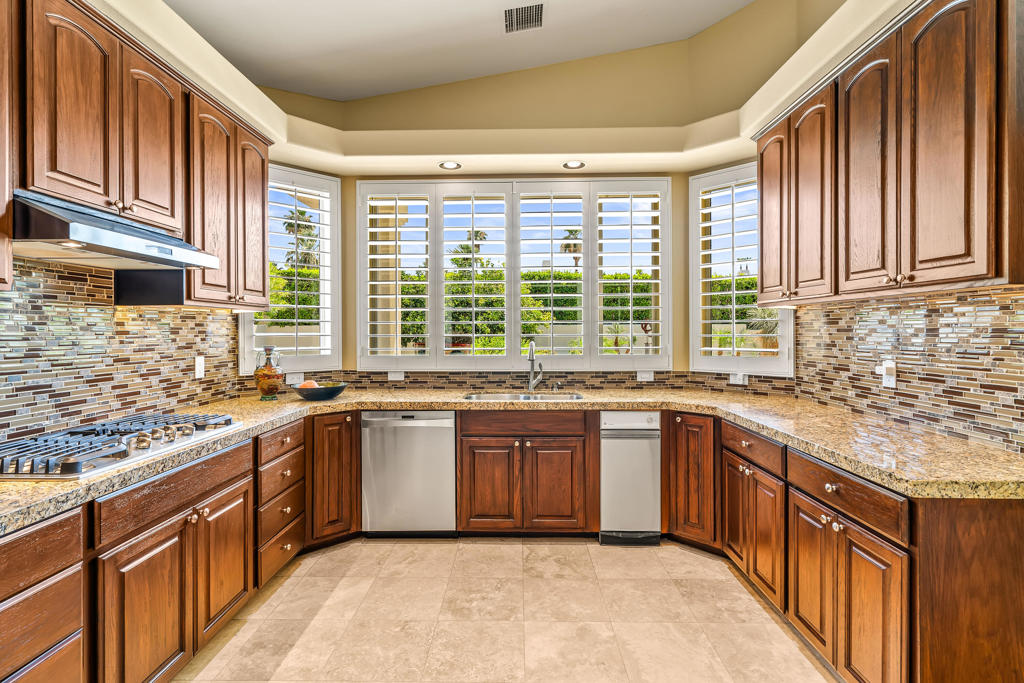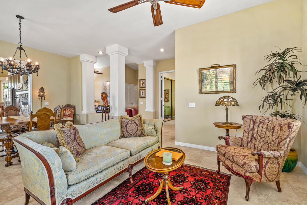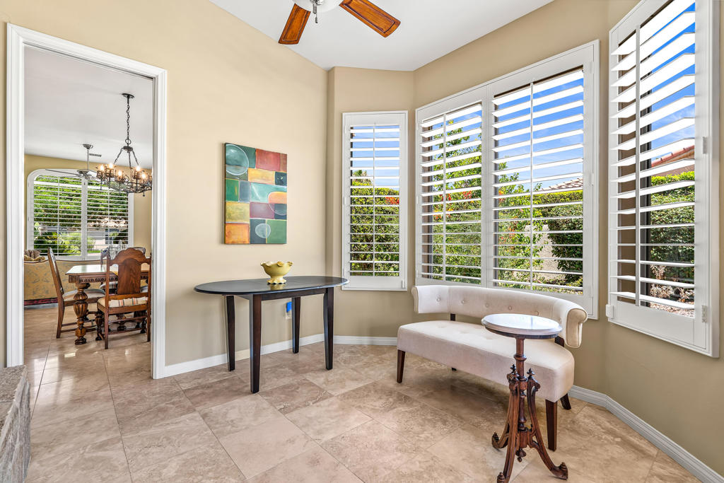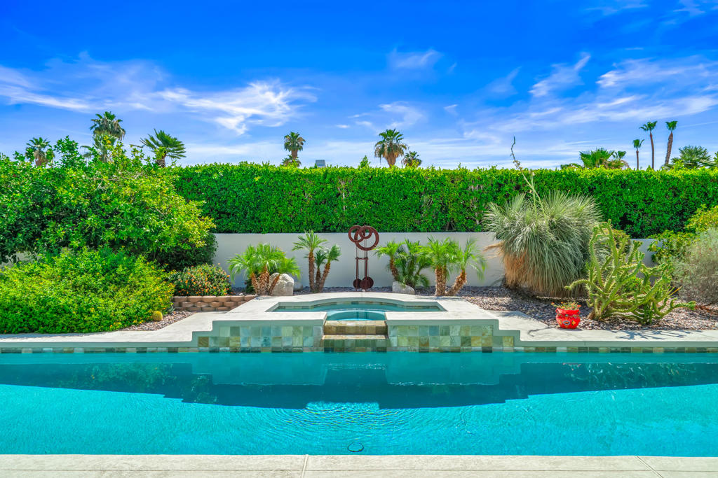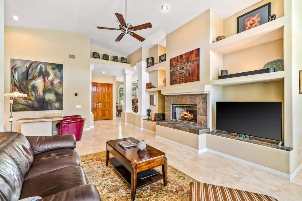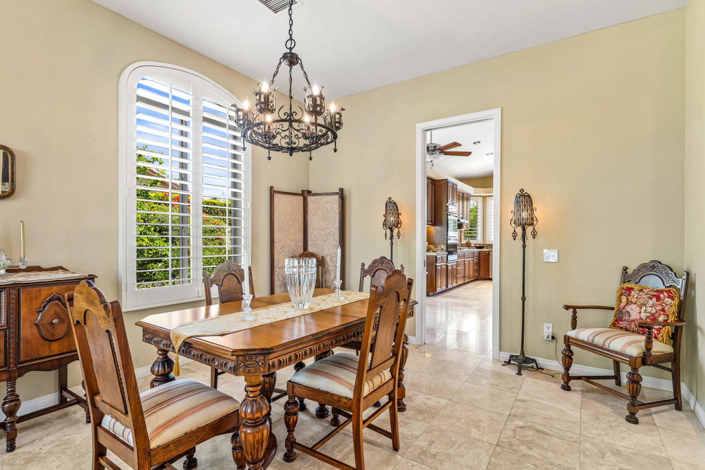 Discover unparalleled desert-style living in this exquisite Spanish traditional home in the prestigious Tamarisk area of Rancho Mirage. This residence combines timeless elegance and modern sophistication on a tranquil cul-de-sac with mountain views. Enter to find wonderful travertine flooring throughout, setting a grand yet welcoming tone. The home features a large primary retreat with fireplace as well as three additional bedrooms and two and a half baths all designed for owner and guest privacy. The chef's kitchen serves as the heart of the home, boasting granite countertops, ample cabinetry, and a cozy breakfast room with fireplace enhancing the space's charm. The formal large living and dining rooms, complete with vaulted ceilings, are ideal for stylish entertaining. The family room offers another inviting fireplace and step-down wet bar perfect for gatherings or relaxation. Outside, a private oasis awaits with covered patio and large backyard including a sparkling designer pebble pool with waterfall spa surrounded by mature landscaping. This outdoor sanctuary is ideal for lounging, al fresco dining or hosting friends and family. Owned solar panels ensure lower electric costs, while smart home technology allows remote control of lights and doors. The three-car garage offers ample storage and workspace, blending practicality with luxury. This isn't just a home ... it's a lifestyle. Every detail is crafted for an unparalleled living experience, where elegance, comfort, and technology merge into one stunning retreat all for an amazing price. Don't miss this opportunity.