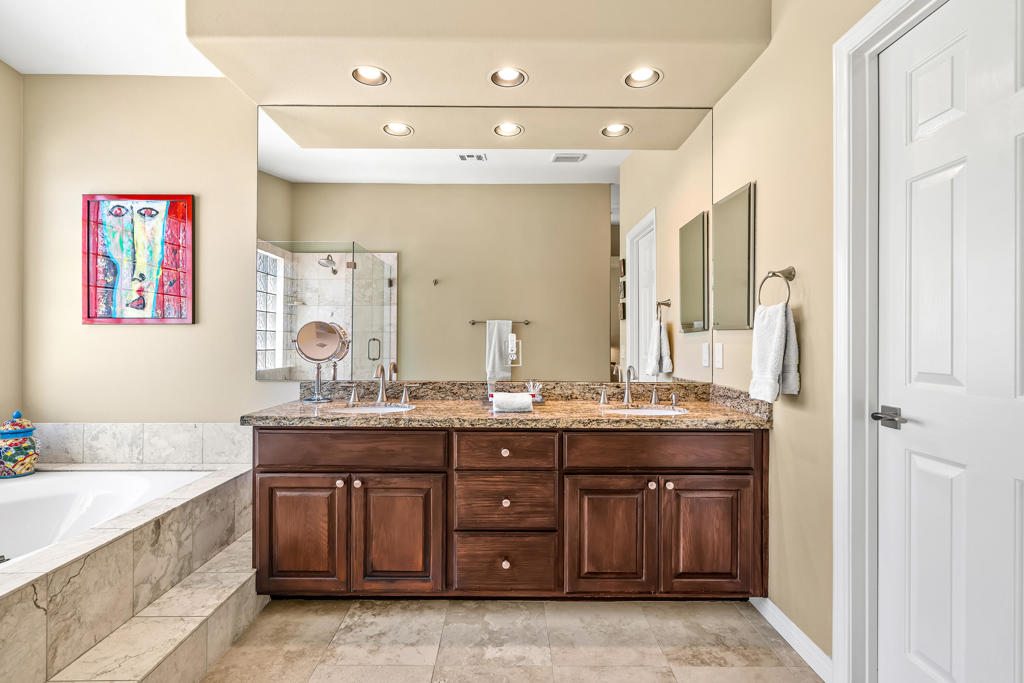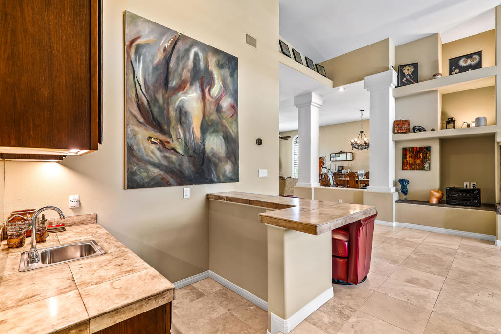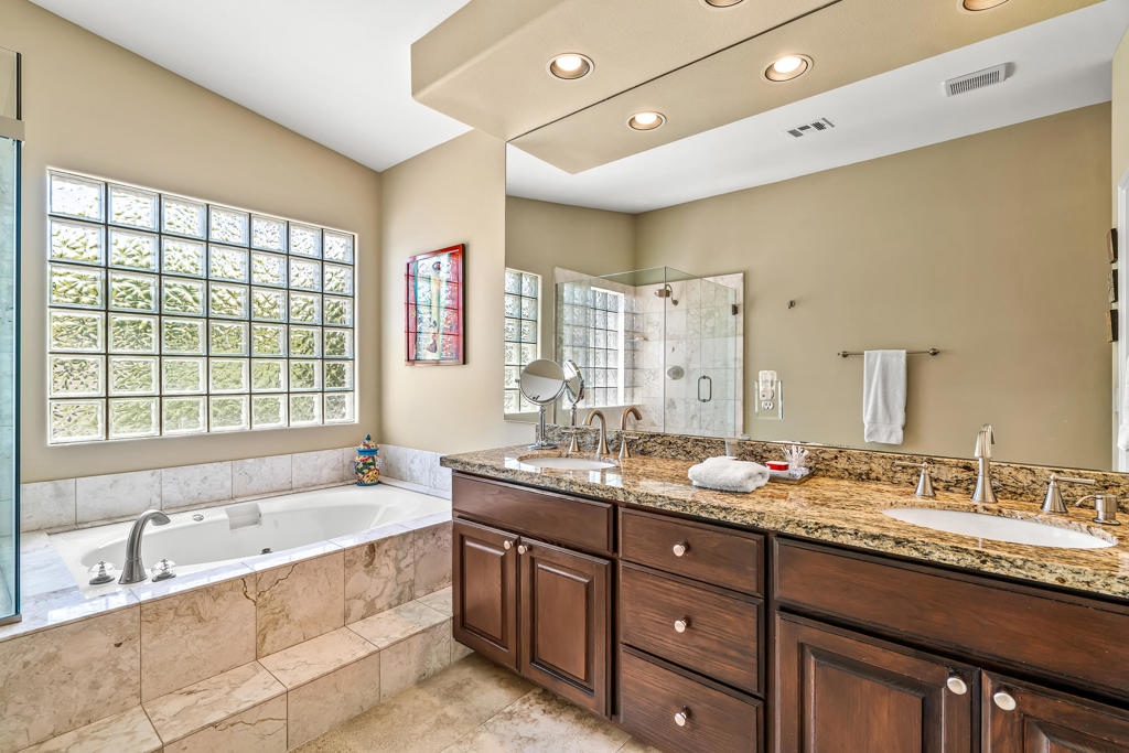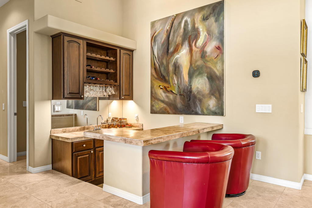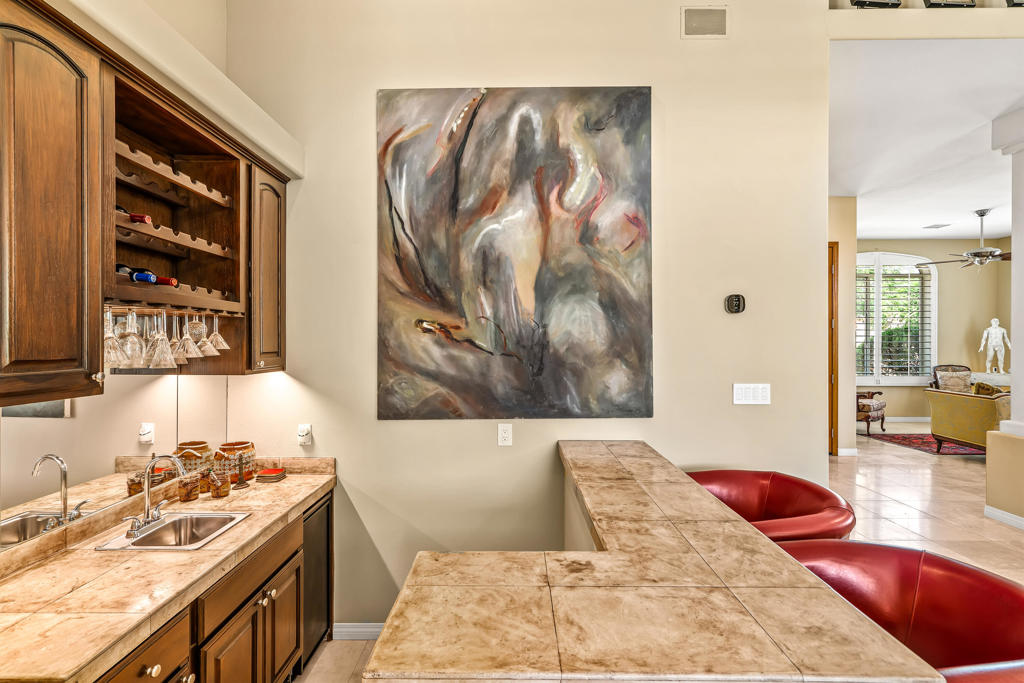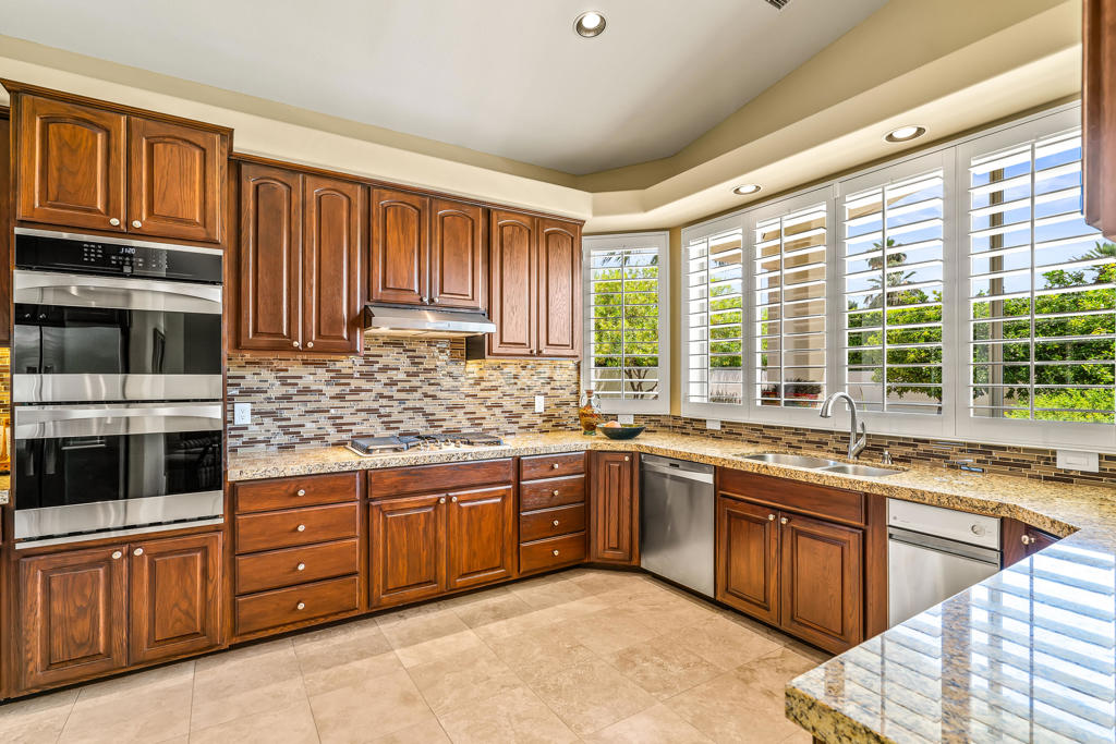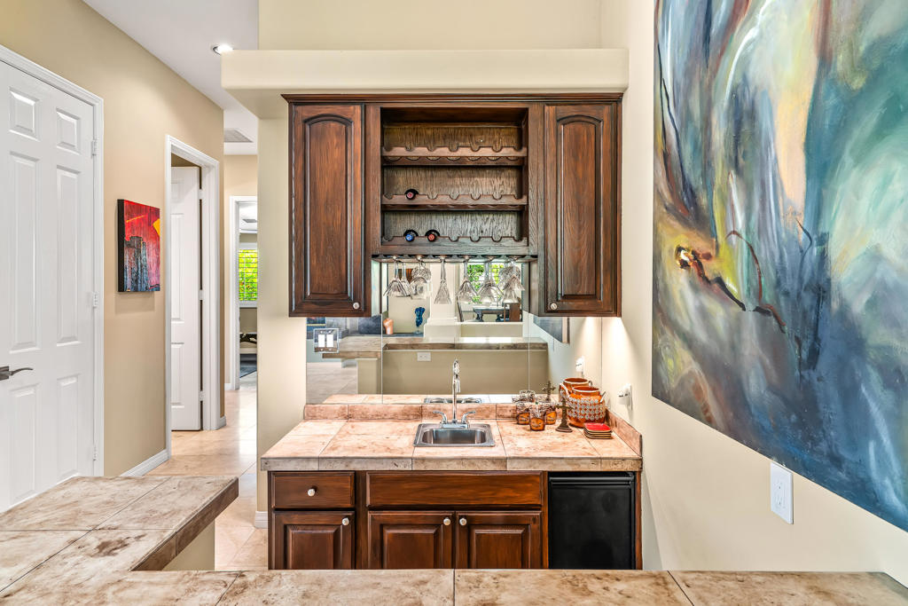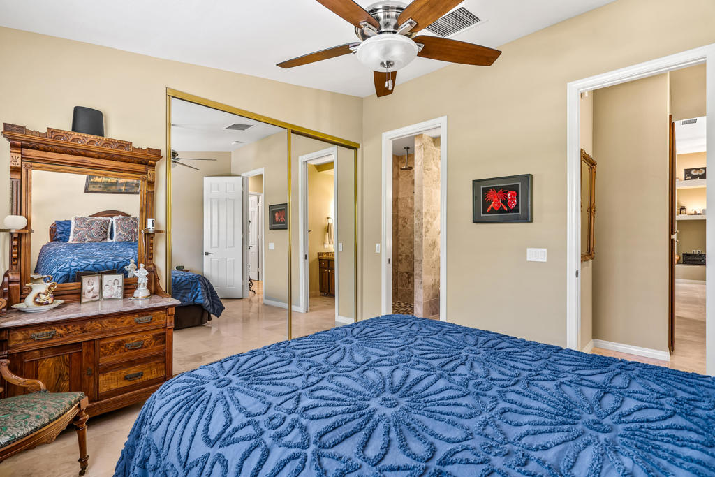 Discover unparalleled desert-style living in this exquisite Spanish traditional home in the prestigious Tamarisk area of Rancho Mirage. This residence combines timeless elegance and modern sophistication on a tranquil cul-de-sac with mountain views. Enter to find wonderful travertine flooring throughout, setting a grand yet welcoming tone. The home features a large primary retreat with fireplace as well as three additional bedrooms and two and a half baths all designed for owner and guest privacy. The chef's kitchen serves as the heart of the home, boasting granite countertops, ample cabinetry, and a cozy breakfast room with fireplace enhancing the space's charm. The formal large living and dining rooms, complete with vaulted ceilings, are ideal for stylish entertaining. The family room offers another inviting fireplace and step-down wet bar perfect for gatherings or relaxation. Outside, a private oasis awaits with covered patio and large backyard including a sparkling designer pebble pool with waterfall spa surrounded by mature landscaping. This outdoor sanctuary is ideal for lounging, al fresco dining or hosting friends and family. Owned solar panels ensure lower electric costs, while smart home technology allows remote control of lights and doors. The three-car garage offers ample storage and workspace, blending practicality with luxury. This isn't just a home ... it's a lifestyle. Every detail is crafted for an unparalleled living experience, where elegance, comfort, and technology merge into one stunning retreat all for an amazing price. Don't miss this opportunity.