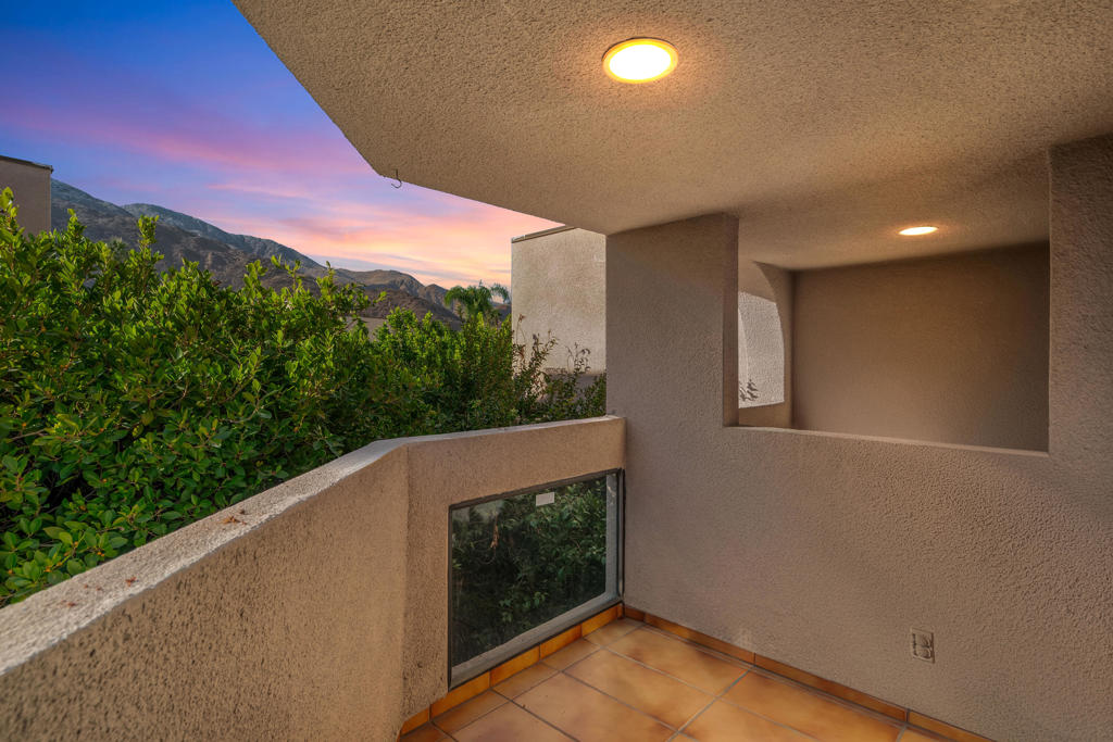 Discover refined living at 477 Village Square East, a spacious contemporary 3-bedroom, 3-bathroom condo nestled in the exclusive gated Village Racquet Club. Spanning 1,923 square feet, this home offers a blend of elegance and modern conveniences. Sited on an interior corner lot, this residence provides a peaceful retreat away from traffic, while showcasing stunning mountain views and steps away from community amenities. The living room features a wet bar, cozy fireplace, and wonderful private balcony creating an ideal spot for enjoying morning coffee or relaxing at sunset. The kitchen, updated with sleek stainless appliances, cabinetry, and a newer refrigerator, caters to both the novice cook and the culinary enthusiast. A very private second patio is off the kitchen. The primary suite is a sanctuary with a recently renovated double-vanity bathroom, walk-in closet, and versatile sitting room/office with stunning views. A convenient laundry chute leads from the primary closet to the spacious two-car garage with laundry area and seven built-in, lockable closets, two lined with cedar. Two additional bedrooms and baths provide plenty of room for guests. Enjoy the community's recently updated pool and hot tub or take advantage of the well-equipped gym and tennis courts. Embrace the Palm Springs lifestyle in this home that combines modern elegance with resort-style amenities, offering both a peaceful retreat and a vibrant hub for activity in a location that combines functionality with flair.