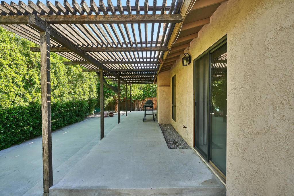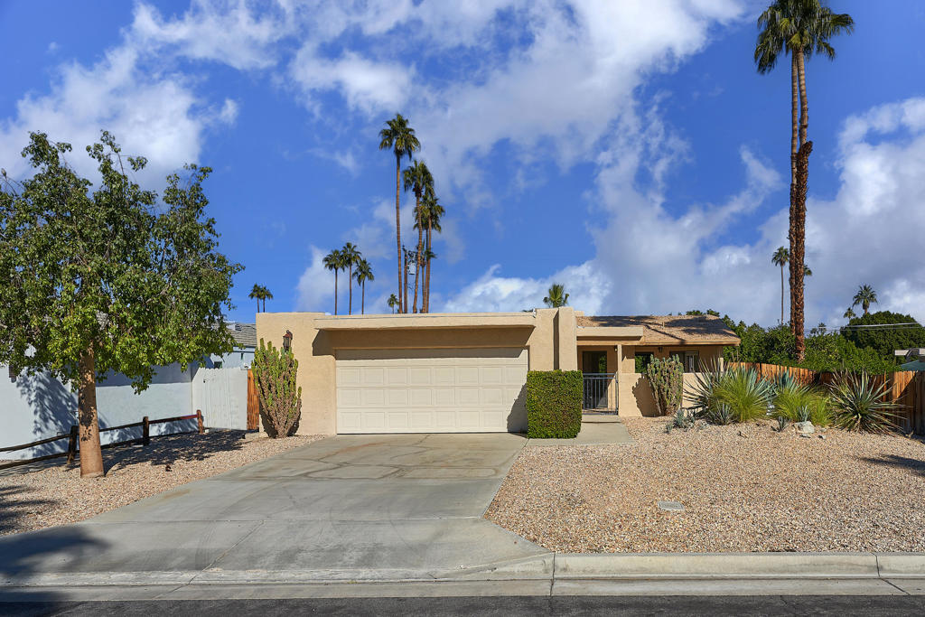 Charming single-family home in South Palm Desert just off El Paseo! This residence is beautifully maintained and in move-in ready condition with newer carpeting throughout. A large great room with gas log fireplace and a formal dining area have sliders to the large, shaded back patio with barbecue. Opening to the great room is the freshly repainted kitchen with breakfast bar, plenty of cabinetry, and overlooking the sunny front morning patio with mountain views. The primary ensuite bedroom has large, mirrored closet and bath while the guest bedroom and bath are bright and airy. There are custom plantation shutters and ceiling fans. The low maintenance yard features rock landscaping. A two-car garage with remote control, washer/dryer hookups, and direct access to the house complete the premises. Non-smokers please and a minimum of one-year lease. Great location and great price! Note: Some photos have been virtually staged with furnishings.